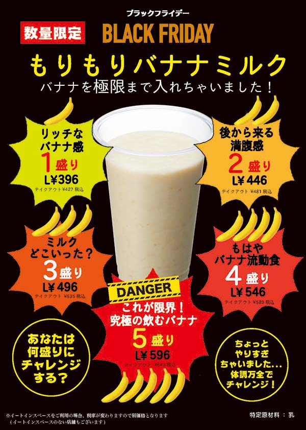 11/19(金)~28(日) イオンモールで開催されるブラックフライデーで ★『もりもりバナナミルク』を数量限定販売★