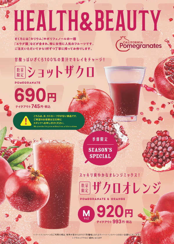 カリフォルニア産のフレッシュな ”ザクロ”を使用した2種のメニューを <数量限定>でお楽しみいただけます!